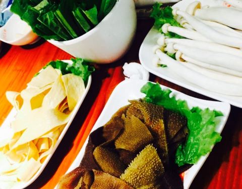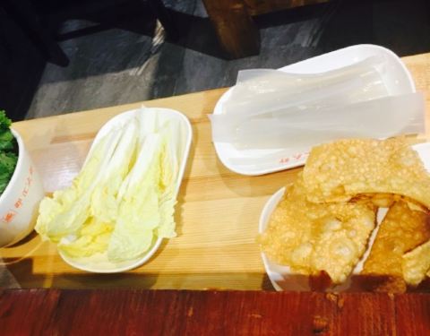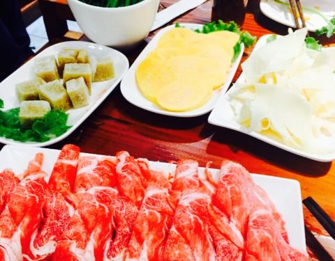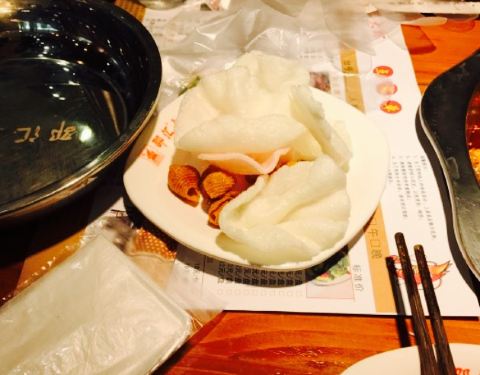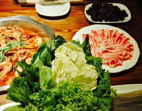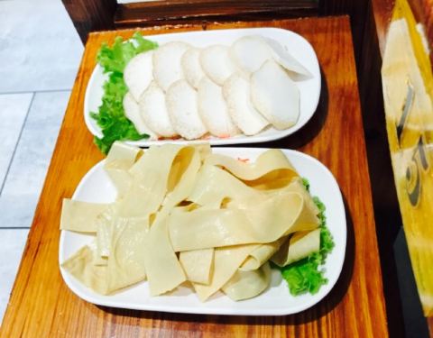 ...料自己配,配有免费的虾片和海带丝,虾吃完后再加水涮其他食材,吃的会很满足,可是会觉得越吃越咸呢