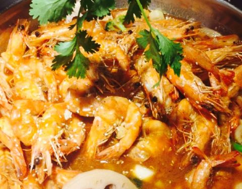 年中新开业的店面,可能因为打折的活动,或许因为食材是虾,客流量很大。共有两层用餐地点,包房在二层,室内装潢算是现代化的。食材海鲜虾,肉质很清新,佐料自己配,配有免费的虾片和海带丝,虾吃完后再加水涮其他食材,吃的会很满足,可是会觉得越吃越咸呢。