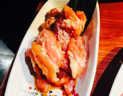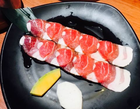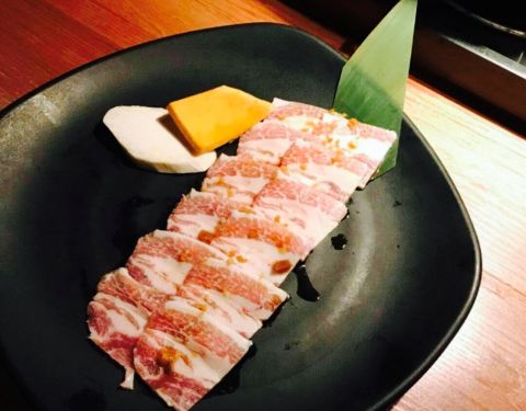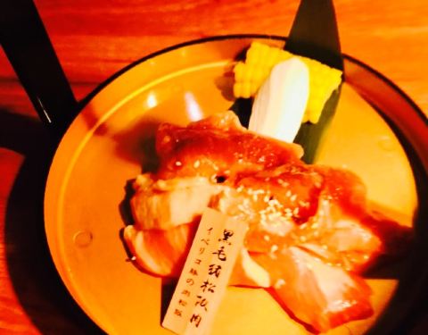 都说网红点很难排队,果真是这样,下午六点多过来的看到外面很多人。还好我托静静的福,免了排队。一行十几个,那个壮观啊。店面好非常,里面灯光比较暗,好有氛围。前菜梅子番茄很是开胃,跟之前在大腕鳗吃的蜜渍小番茄有几分相似,酸酸甜甜的。上了大概有九款肉吧,每一款肉都很清新,而且店员耐心跟我们讲解每一款的烤法,确实好专业哦。印象最深的是牛肩胛,肉味十足,而且很脆。黑毛猪松板肉是事先腌制过的,烤至金黄就可以吃,味道偏甜,本人很高兴。非常推荐来这家店,超级高大上啊。
