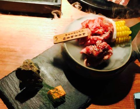 罗了两次号,因为第一次罗好时候我们正好有事情要做错过了,之后到八点半的时候又罗号,到店差不多九点,才发现店家关闭了区号系统,过到去还要排队,其实挺生气的,你可以取号肯定要派号。最后我们还得从新等,好在基本吃的七七八八,然后等了十分钟左右就到我们了。入店时间差不多九点,服务生告诉我们要赶紧下单,厨房九点半下班。冲冲忙忙的点了三个肉,一个饭,一个菜,一个麻薯。才发觉,确实好多,我们两个女的根本吃不完,超级饱。因为我们是最后一桌,服务生都很热情地帮我们烤,他说平时忙到基本没时间帮顾客烤的,排队,基本要排两个半钟。那我们算挺幸运的,估计也是想早点下班的原因,嘿嘿。很有味儿,烤肉挺好吃的,但网传的麻薯不入味,反正我不太喜欢哪个味道。菠菜粘芝麻酱吃还挺特别的。