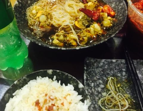 刚下车,来到这里,感觉好饿,看见了龙虾盖饭,就进去品尝,犹豫来的挺晚的,就随意点了点吃的,朋友说辣子鸡好吃,就点了。青菜上菜速度很快,辣子鸡就有些慢,或许是做法比较麻烦,辣子鸡味道还不错,就是放了好多麻椒和辣子,有点刺激,整体还可以。