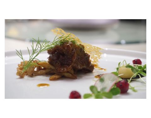吟赋主菜 - 黑蒜醋汁菇香雪花牛肉,中西结合的做法,牛肉的肉质很好,口感自然不会差。好吃且下饭