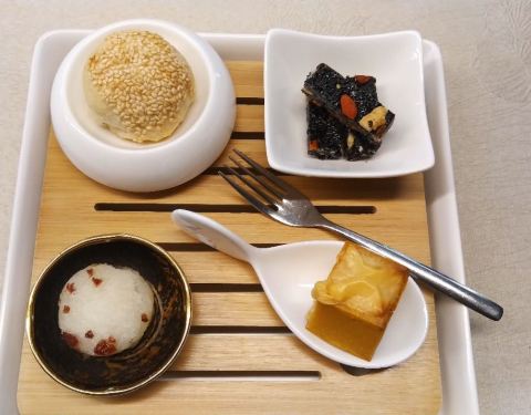喜欢的餐厅,下午茶也必须很优秀。抓住秋色的尾巴,来五季随园度过一个愉快的下午茶时光吧 双人餐有古树普洱,有坚果,有自家手制的四款美点,萝卜丝酥接地气又美味;口感像米饭饼的点心,造型有点微型提拉米苏的既视感;芝士南瓜超赞,偏日式,很柔和的感觉。果盘也很精致