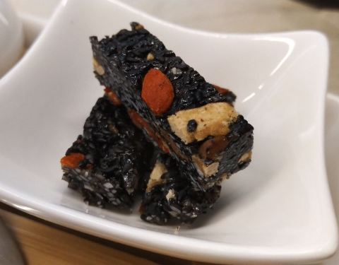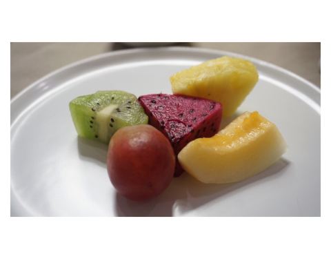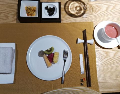 口感像米饭饼的点心,造型有点微型提拉米苏的既视感;芝士南瓜超赞,偏日式,很柔和的感觉。果盘也很精致