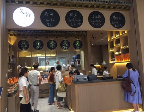 手中正巧有张5折券,孩子在青少年活动中心上课,结束后就到来福士底一层直奔久赞。除了寿司,还有新鲜的海产品,主要有三文鱼是我喜欢的,68元一份6小片,也都对折!买了三份寿司,一份三文鱼,一份小墨鱼脚,打折后才72元!店铺又送了张50元工作日全场抵用券。三文鱼入口即化,好赞!小墨鱼太咸!寿司味道不错。可以打四分!