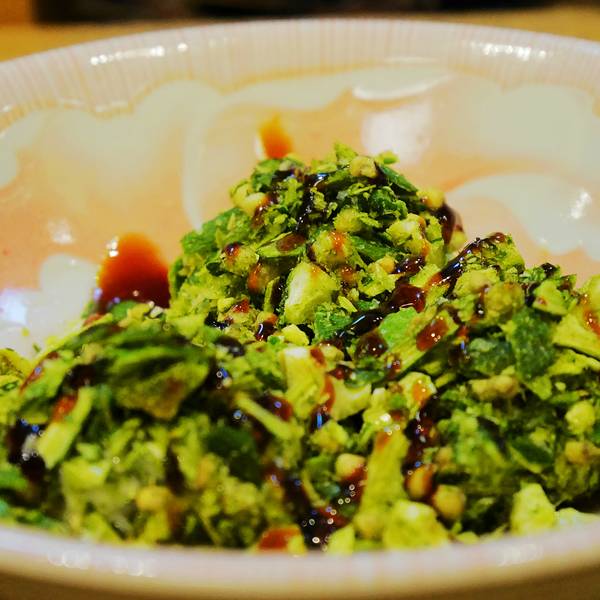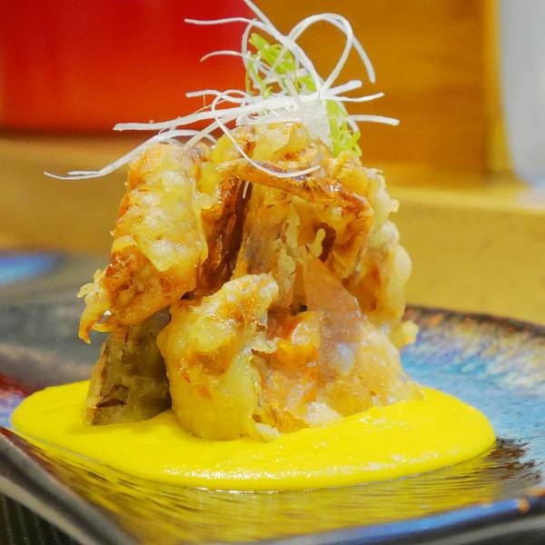 #点评召集令#这是家食材品质很不错,在小区里面的日料小店,开了好几年,喜欢坐在料理台附近,看各种食材在厨师手里变换的样子。手握寿司在最好的温度吃到是一种享受,蓝鳍金枪鱼寿司也是店里的招牌,食材新鲜,寿司米饭的口感也很不错。 海胆的吃法有很多种,可以生吃,也可以做成海胆天妇罗,包裹苏子叶之后炸好,口感软嫩。还有店里的招牌海胆饭,满满的海胆,吃起来很畅快。 奇妙虾球,是性价比最高的食物,虾仁配奇妙酱,包裹秋葵碎,外皮脆嫩,配奇妙酱的饱满,最里面是虾仁的嫩滑,口感很复合。 天妇罗虾,很喜欢这家的各种天妇罗,大虾品质很好,口感扎实。 软壳蟹天妇罗,最爱的天妇罗之一,软壳蟹口感软的,炸到脆皮,配天妇罗酱汁是不错的口感。 松茸饭,赶上松茸的好几家,松茸饭里面配黄油,煎过之后做成焖饭,香气四溢,一瞬间就吃出满足感。门口有竹子做装饰料理台的位置墙面的日式风格的画是用来布置的煎松茸软壳蟹天妇罗,配了南瓜汁,有些像西餐的酱汁,配了日式的天妇罗炸法,不油腻,却很香。天妇罗鲍鱼也很棒,有些酒香,口感很好。奇妙虾球,分量很足,做前菜很不错。海胆沙拉,焙煎芝麻酱的版本,很爽口。蓝鳍金枪鱼手握寿司,口感很特别,比三文鱼口感更软嫩。 环境很舒服,人又不多,有一些精致家庭风的感觉。各种高档食材价格又不贵,是个很适合解馋的地方。