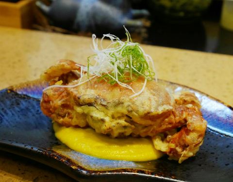 软壳蟹天妇罗,最爱的天妇罗之一,软壳蟹口感软的,炸到脆皮,配天妇罗酱汁是不错的口感。料理台的位置