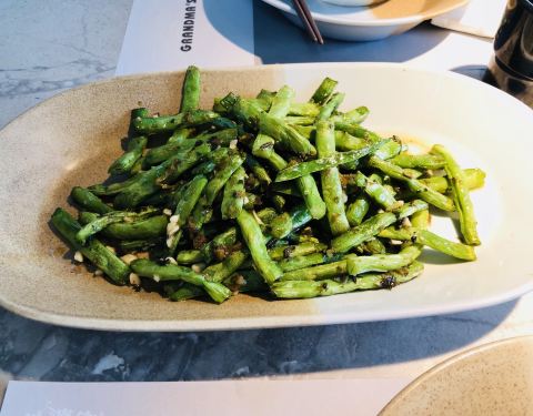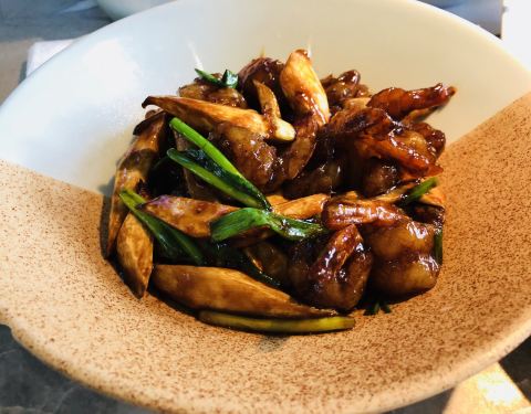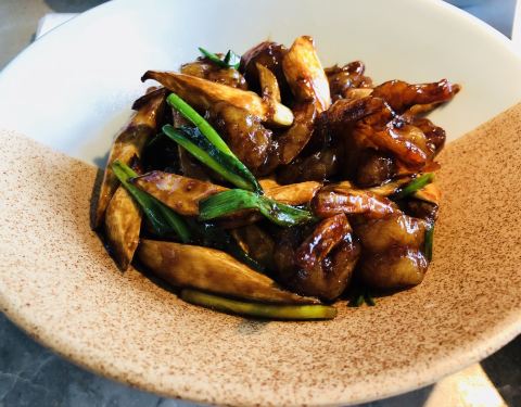 外婆家(西湖天地涌金店) 西湖边的涌金店,☀晴朗明媚的夏天花园座位的午餐,虽然热,到不可辜负这景美花美! 【剁椒芋艿】微辣咸香,芋艿绵软香甜入口即化。 【葱爆两样】最近大火的美白成分烟酰胺,实际上肉类和动物肝脏里含量最多了,所以这是道正经美白菜[呲牙]。