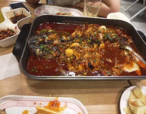 汤非常浓,微辣口感,味道还挺合适我的胃口,朋友不怎么吃烤鱼也说好吃,就是服务不太好,整条鱼都是...