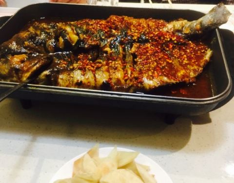 - 因为鱼是自己挑的新鲜宰杀所以肉质比较好,但是烤鱼的烤的口感并不是太明显,或许是吃惯了很多加茴香...