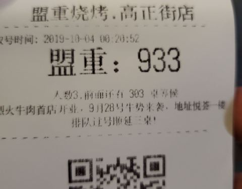 盟重烧烤,五点发号,六点入座,六点半开始点单,七点才陆续上菜。味道很棒,确实值得这么傲娇,强烈推荐牛油、辣牛肉、脆骨,黄喉和葱油拌粉[强]