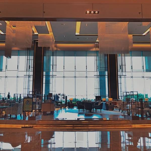 很少给打5分的,这次补打 。call,⌚️足足滴。酒店开业不久,慕名而来在观音上商务中心,停车很方便酒店很大,外围区域装潢简单了些,酒店内倒是华丽。说说自助餐,开业时秒杀的餐券,价钱比较公道,节日来的提早预约了靠窗的位置,空间很惬意,菜品很丰富新鲜,海鲜品种多,??还每人赠送了大闸蟹,??️带着父母来,就是热食的花样稍少些,只顾着东张西望,忘了拍些美照??️。