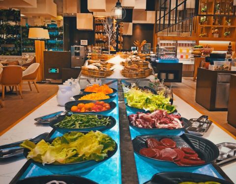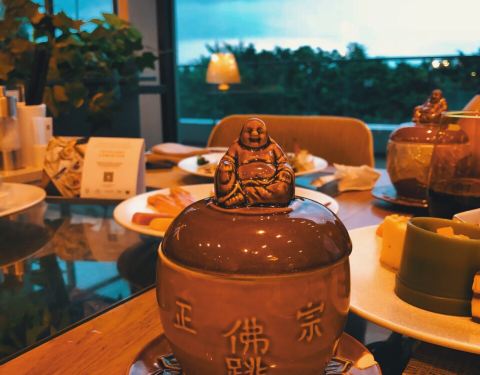 位置:香格里拉大酒店观音山中心,虽然这边对我来说是陌生的地方 但是交通方便,酒店门口就是站台 推薦:进大堂左边就是馨石堂自助餐厅,进去首先选了一个靠窗的位置,刚好台风天,外面的天空颜色很特别。随后去挑了自己喜欢食材~食物的摆放分为甜品区,饮料区,水果区,这三个连在一起;生鱼片和寿司;中间长条分布着凉菜沙拉区、海鲜区、熟食区~与次并列的是烧烤区、披萨区、面档区、煲汤区、主食区等。非常丰富的食材,所以要好好享受香格里拉的自助餐 服務: 非常热情 都是面带微笑,充满活力