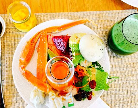 早几个月前就和朋友聊到自助餐摆盘的事儿,她们也很感兴趣,感觉是一件很酷的事情。因此我给她们发了邀请函。也想要说去打破常规去做不一样的改变。近年有很多喜欢人吃自助餐,因为种类多,涵盖中餐,大菜,日料还有各色菜肴和小巧的甜品。可是我发现大部分是吃得比较乱,因此我想能不能吃得精致些,我就大胆的做了一次计划,在自助餐厅吃出法餐的既视感,有开胃,主菜,主食,甜点。看看我的一些小改变。学着做你也可以吃得精细。三文鱼。在碗下垫入一片紫苏,然后把鱼自然叠高,营造出一种立体的样子,佐以芥茉进行点缀,三文鱼口感丰腴。帕尔玛火腿配哈蜜瓜。作为前菜,同样是营造菜品的层次感。火腿的咸香和哈密瓜的清爽结合摆盘干净利落。炙烤对虾配南瓜酱。虾经过炙烤有焦香的味道,和紫苏搭配。口感更丰富。旁边的南瓜酱配上黄油面包。香煎鸭肉配黑椒汁。作为主菜,鸭肉的厚实感在舌尖跳跃,搭配了节瓜,和去皮番茄,最后佐以黑胡椒酱。香煎羊排配时蔬。作为主菜的羊排,羊肉鲜嫩,能吃迷迭香富有的浓香,一口下去大写的满足感。肩颈肉配番茄薄片。这道料理很好玩,餐厅主管看到我摆盘,也立马和我分享了他的摆盘,可以看出看挺前卫的,运用了流行粉末元素,片状元素,把有秘制的番茄薄片烘干的番茄粉末,把番茄打碎在烘烤箱烤成薄片,番茄粉撒在周边,配上肩颈肉是不是很有意境。龙虾肉酱意面。作为主食,去问的厨师有什么意面的时候他推荐了这一个,龙虾和肉酱的搭配第一次尝试,火候掌握得很好,意面被龙虾汁完全包裹。撒上芝士粉。甜品组合。最后的甜各种元素组合出有趣口感,甜品也可以这样简约。作为自助餐的压轴,甜品给人的样子是最后的满足感,作为一次完美的ending。我也期待和同伴们一起来玩转摆盘。