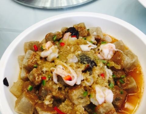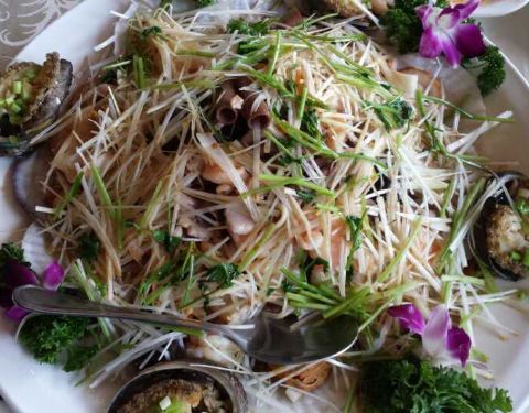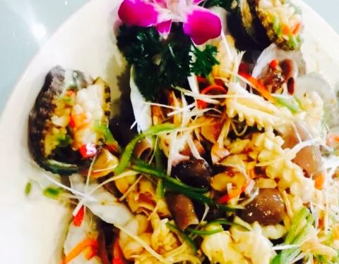 同学婚宴定在这,重新开业后,还是第一次来。地脚真的很隐蔽,很多出租车司机都不明白。在莲花湾小区那。从正对着新星星海的路口拐进来可以见到。同学婚宴当天的菜品挺多的,说实话海鲜做的不怎么好。鲍鱼不小,但是连处理都没处理。因此吃的时候口感受影响。整桌菜品最出彩的不是海鲜竟然是拔丝芋头。海鲜不是他家的主打么。