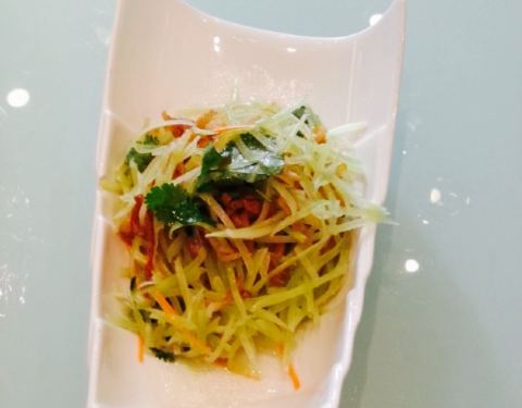 开业一个月,第一次吃,饭店一共5层,第二层是散台,周六中午到12点共开了4桌。客流量一般般,味道跟以前的大可以差不多,蝶鱼头虽没以前好吃也很小,价格108有点不适宜,可是味道还算不错,会再点的。枣馒头酥酥的,芹菜虾球很嫩,配的酱汁很特别。不过服务员不会自动换碟。整体来说,不错,还会再来。
