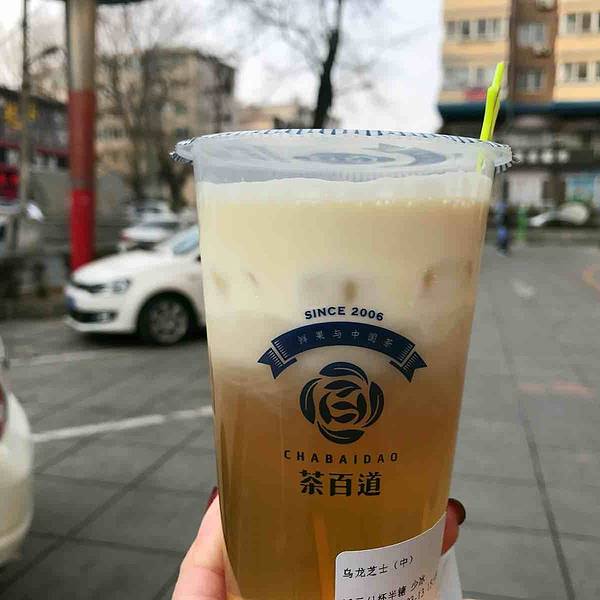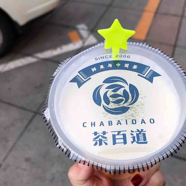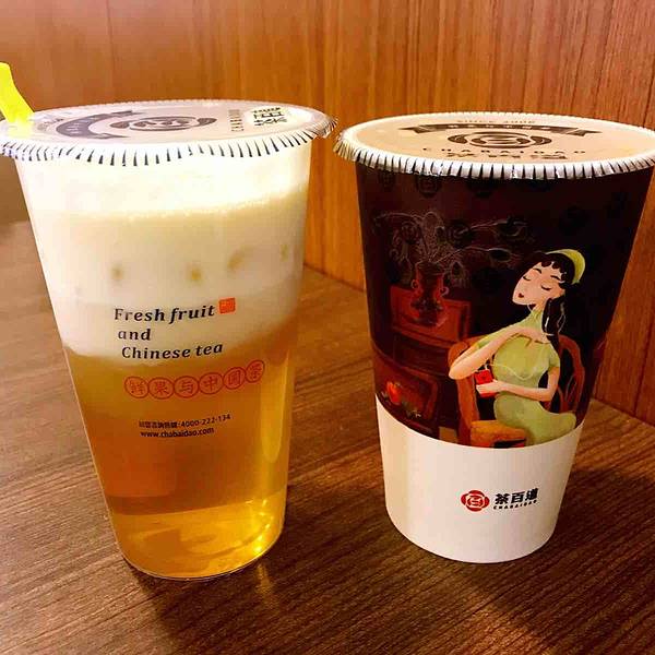 东财这片有好几家神一样存在的饮食店,比如大盘鸡,比如酸汤鱼。茶百道看起来比神馆子更有现代感,现在大连满街都是这种奶茶奶盖茶店,j看团购好便宜,不能放过。店里有四把高椅子,没有台子,点完茶就只能面对两个服务员妹妹,看她俩忙乎。茶的味道还不错,竟然还可以免费加两种料,记得有椰果,但是妹子都没有提醒我,便宜没占到??。茶是我喜欢的,下次要试试奶盖怎么样。