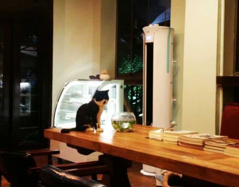 店面的入口在曾厝垵的月光岩花园别墅酒店内,因为住在那里,所以每天都路过,看到可爱的猫咪们,店主是个爱猫的讲究情调的文艺小女生,甜品都是用的好材料,饮料啤酒也都很不错,每只猫猫都有不同的性格,那个白...店面的入口在曾厝垵的月光岩花园别墅酒店内,因为住在那里,所以每天都路过,看到可爱的猫咪们,店主是个爱猫的讲究情调的文艺小女生,甜品都是用的好材料,饮料啤酒也都很不错,每只猫猫都有不同的性格,那个白白的看上去最可爱的主子,其实很有个性,只喜欢人家摸头,它那肥嘟嘟的样子开始还以为它是孕妇,哈哈哈哈,其实人家是丰满帅哥一枚,其它的猫咪都可以抱,最可爱的是加菲的黑猫警长,,最亲人。店主聊起猫咪,疼爱之情溢于言表,对啦,还是小美女噢!推荐去曾厝垵的朋友们去抱抱主子,给小主子们请个安,顺便吃个甜品,看看美女,哈哈