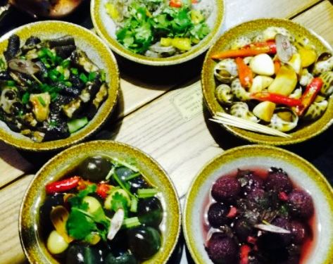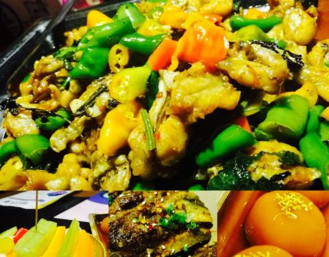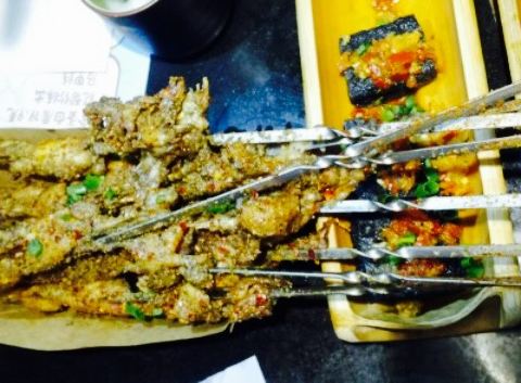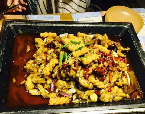 小吃推荐烤牛蛙,十里香排骨,爽口鱼皮,臭豆腐,去骨黑凤爪,烤茄子,烤牛蛙真的很香,配料好,烤出...