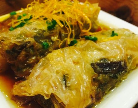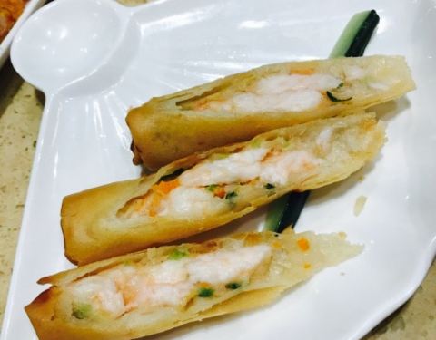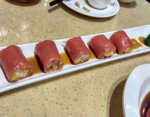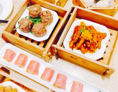 【墨鱼卷】??????????。全场最佳。超香,外边的紫菜还有些脆。强烈推荐。【猪肝枸杞肉片粥】??????。还不错,粥很棉,猪肝的味道很重,没有祛味。【烤鱿鱼须】??????。味道还行,鱿鱼太硬,中规中矩。【干蒸】????????。虾挺多的,可以。【红米肠】????????。蘸花生酱,不算太腻,炸得很酥脆。【金钱肚,凤爪,北极贝卷,香菇饺,虾饺】。??????这几个都可以,没有太出色,但是合格。凤爪的味道淡了点。北极贝那个一般,有点像外面卖的紫菜卷,可是里边的肉质松软。香菇饺味道很淡。【泰式炒肠粉】????。刚吃几口挺香的,吃着感觉很甜,一般吧。【凉拌秋葵】??。不推荐。秋葵本来就滑溜溜的,还放进一坨辣椒油里面,跟陈醋的味道一点都不搭。【总的来说】在这边就餐还是挺合算的,暂时有8,8折,菜品十分多,选择性很强,还会再来吃。