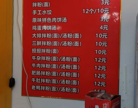 就在老三样隔壁,那人太多了,所以进了他家,有小吃也可以炒菜,吃了肉饼汤和牛杂拌粉,汤不错,拌粉牛杂不少,但煮的太烂没嚼劲。