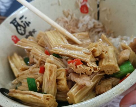 她们家是一个路人老奶奶推荐的,说是很爽口,八点半左右去的,已经都要卖完了,木耳肉饼汤还剩下最后一个了,依旧量大实惠,3块一份的拌面里面还有很多浇头,唯一不足的就是略微有点儿油了,面也有点儿油,汤也有点儿油了,但是整体还是不错的很有南昌特色。