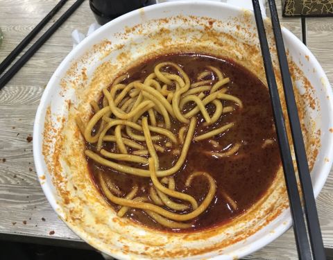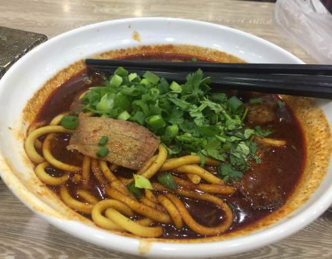在食品街闲逛看见这家店,号称是老店那就进去尝尝,要了碗牛肉丸子面,本来以为是牛肉丸子,上来后才发现是牛肉和丸子[捂脸],味道不错,挺好吃,面劲道,牛肉也不错,丸子就不评论了,就是面丸子吧,可以尝尝,还是可以的。