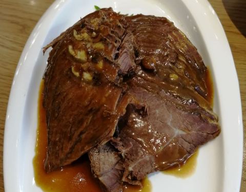 位于恒大城市之光楼盘的滨水广场就在江澄路和中山东路交叉口附近,具体还是要靠导航来找。这家店是之前的一家开始百丈路上的瞻岐海鲜楼的分店,考虑到停车和包厢问题,所以进行了升级,部分包厢可以看到江景。海鲜楼的包厢大大小小也有十几个,可以容纳不用的就餐需求。关于菜品,炒鸡推荐的就是#敲骨浆# 。真心觉得瞻岐人民的美食智慧好足啊。用早稻米炒制跟炖足了十二个小时以上的骨头一起煮,到最后就融化合二为一,实在是太赞了,而且因为没有用淀粉,所以女生吃了也不会发胖。推荐#蟹骨酱# 。活蟹剁成小小一块块,然后勾芡起来,每一口都可以吃到丝丝的蟹肉,感觉物有所值。葱油泥螺做法比较有特点。#咸菜夜开花麻菇蛏子羹#,蛏子很肥而且还有丝丝甜味,说明质量很好。#红烧虎头鱼#,虎头鱼在禁渔期能吃到得多亏了爱海钓的老板娘,煮的没有鱼腥味但是肉质还嫩。最后推荐一个#凉菜牛肉#,选用山上的黄牛的牛腩肉,不浸水,蘸一点椒盐,肥瘦相间咬起来也不困难。整体来说,这家店的海鲜挺清新的,并且还能吃到一些海钓产品,会有惊喜感。