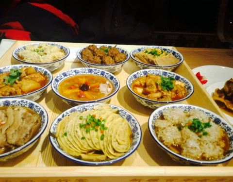 和同事们聚餐,来到这家本地有名餐厅。特别爽口的食堂,羊肉特别特别香,最喜欢这个羊尾,吃的停不下嘴。出名的九大碗太厉害了,全是肉啊,如今的人估计都吃不下啦。另外一个爱的就是土豆,土豆压成泥后炸了粘西红柿??,非常美味,比麦当劳的薯条都入味。