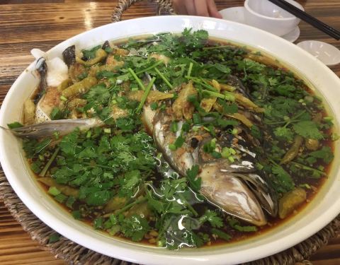 螺丝朋友很评价第一次吃到这么好吃的,招牌鱼头,我们强调少辣,可能是因为这样,鱼吃起来还是有点土...