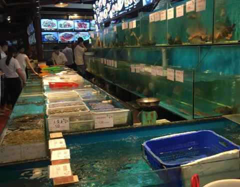 环境没得说,岭南园林式设计,比南头的都要好,整个环境古香古色。提早订了房间,尽管有低消,但是人均消费还是轻易达到。菜式以本地粤菜为主,偏顺德口味,菜的份量很足,6个人吃例菜感觉有些多。推荐酸菜鱼,避风塘桂虾,菊花汤圆,清炖羊肉冰糖放太多了,特色脆鲩的酱汁也不入味,下次来再尝试其他本地菜。