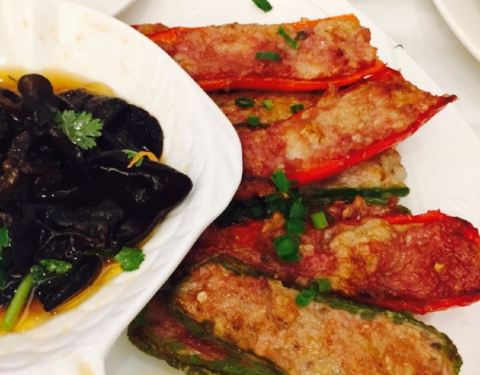 顺德陈村镇“寻味花香之系列花宴”活动又是进入尾声,这是「新君悦国际酒店」的“君悦好逑宴”,桂花松子鱼、姜花子姜鹅、鸡蛋花拌虾球、玫瑰豉油鸡、玫瑰百合捞八爪鱼、夜香花鱼蓉羹、菊花香橙鲜淮山、茉莉花香焗骨、浓汤浸火龙果花、清香桂花糕,大酒店环境和服务还是不错的,1200元,不过嘛,出品就一般般,没有很出彩。