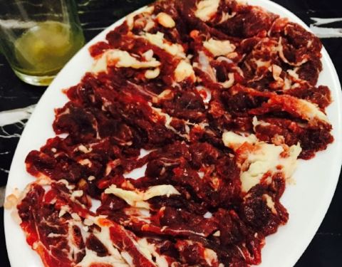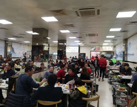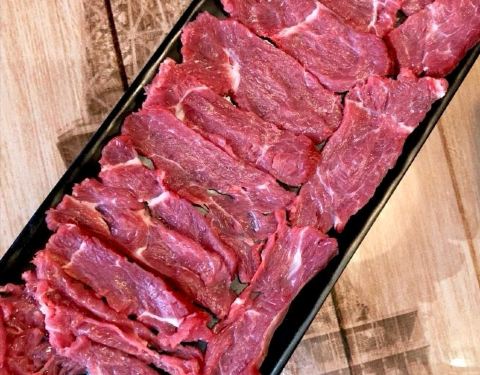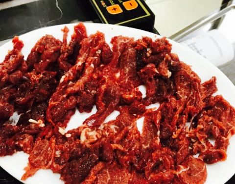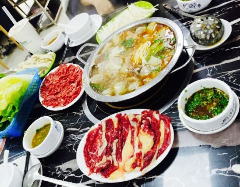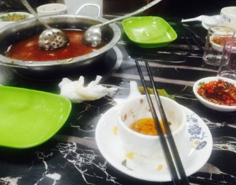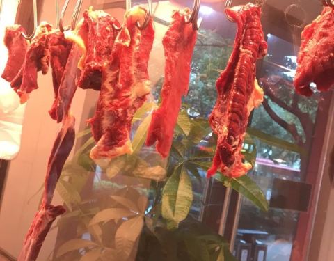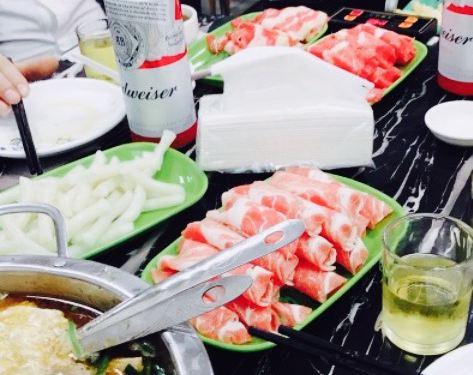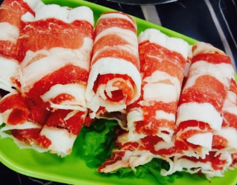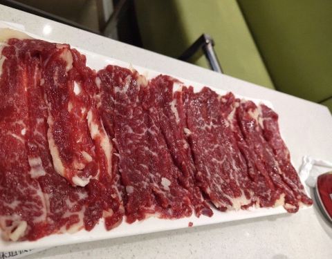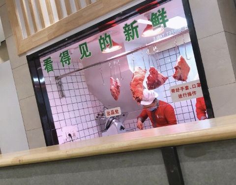 - 在牛肉火锅的最后再涮一点手擀面,也填饱了肚子。切割牛肉的操作间直接可以看到,牛肉很新鲜