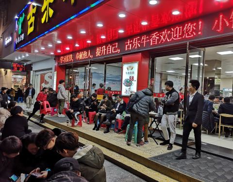 温州人对于牛杂有一种谜之迷恋这边做牛杂的店铺很多都很火,这牛杂火锅餐厅算是相当厉害了,每天过了五点多钟的话,外面排队就会排到出大马路,基本上在这边铁杆的粉丝还是蛮多的。