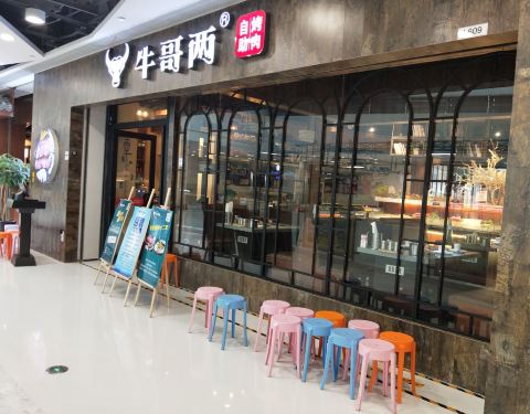牛哥两位置在义乌之心六楼观光升降梯处。pass卡换来的自助餐,另外团了一份午餐自助,两个人去吃的。做的位置附近感觉地板有点滑,要当心点。说是自助烤肉其实除了纸上烤肉还有小火锅。自助取的食材也是有用于烤和用于煮的,火锅的话还有自助蘸料,蘸料品种比较多。烤肉的话是装盘装好的可以自取,但吃了好几种也不知道分别是什么肉,但都没有羊肉的味道。烤肉的调味料似乎只有椒盐,辣椒粉,孜然粉,没有专门的烤肉酱。别的调味肉类里有鸡翅中还不错的可以吃吃。饮料选择比较少,因为汽水的机器坏了还没修,只有几种很甜的果汁饮料,酸酸乳饮料以及咖啡。冰淇淋区也可以自助挖冰淇淋。糕点普遍不太入味。熟食吃了鸭脖味道还可以。水果的质量还挺不错的,西瓜,香瓜,小芒果都还挺好吃的。服务方面是不错的,会及时询问是否要换纸和加汤。整体来说相比于同价位甚至更低价位的自助,食材品质不高,种类选择比较少。性价比低了点。但因为在义乌之心成本高也可以理解。