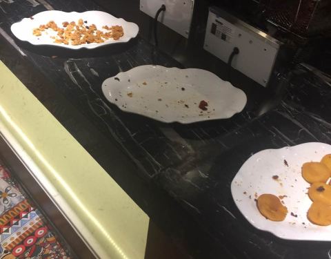 - 菜品还可以,看起来也比较清新,水果都是拿完就马上补给。还有很多我比较喜欢小吃麻球等等
