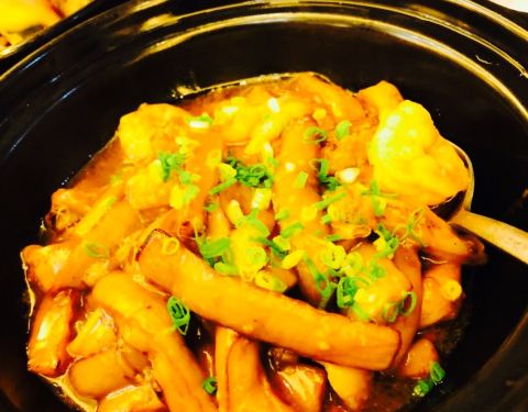 又来吃啦,榴莲酥是必点,里边是实实在在的果肉,所以我超喜欢吃,这种大小的吃几个也不会腻。这次点了些平日里没吃过的,图三的茄子好入味,还有几个虾仁,也很爽口,口味也不是很咸,刚好。海鲜粉丝煲口味也是很好,就是所谓海鲜,一眼望去都看不见,只有几条鱿鱼须,可不可以稍微多放一点。毕竟这名字。??。蒜香骨和炒饭也鲜美,反正都入味。又是吃的撑撑的。??。