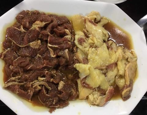 双边肠包裹一颗茭头或者泡椒,挺好吃的一斤招牌牛肉送半斤五花肉还行鱿鱼不怎么样转发朋友圈送的老虎菜不错韭菜刷了挺多油的总体还是不错的二个女生吃都吃不完还打包了 2017-07-15 02:51来自携程 网友