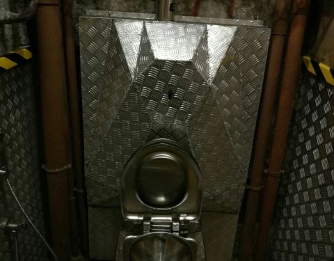 往返程各有一个,风格类似,但各具特色,不锈钢马桶,踩油门的洗手池,真的可以算作一个景点了