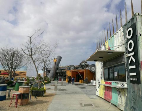 迪拜前往阿布扎比公路驿站,创意十足的洗手间,艺术家们真是胆大任性啊!往返程各有一个,风格类似,但各具特色,不锈钢马桶,踩油门的洗手池,真的可以算作一个景点了!