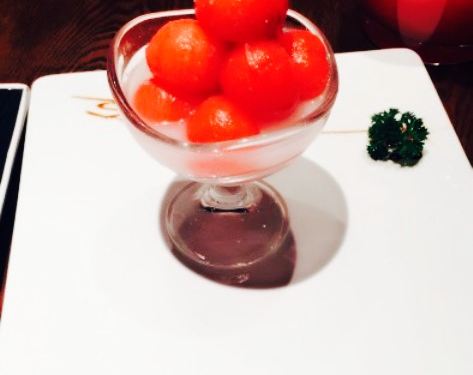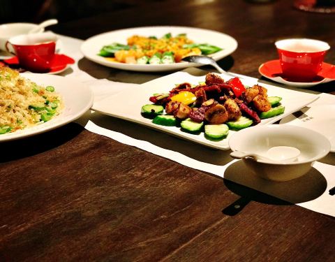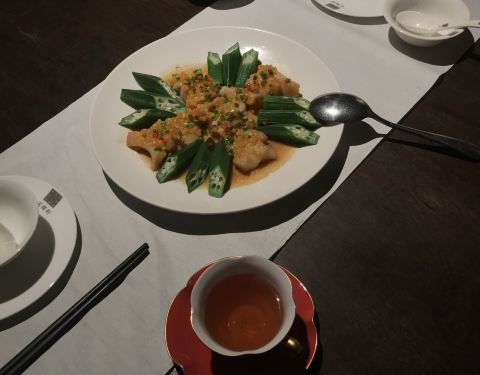 来过几次,都因为没有座位没吃上,这次终于有座了,装潢是很大气的新中式风,很精美的桌椅和餐具,入座后点了几个推荐菜,口味整体比较清淡,食材都很清新,小番茄甜甜的,榴莲酥能吃出榴莲果肉,牛肉粒也是很嫩,类似海螺比较辣,而且吃起来比较麻烦,本人不是太爱,水果虾本来以为是类似芥末虾球那种,实际是水果虾沙拉,本人更喜欢热热的虾球的那种,虾饺皇是比较入味的,不像有的家外皮都烂了,豆花鱼没有拍,是很推荐的,鱼肉很嫩,没有刺,微辣。烧鹅,应该是,不大记得了,无功无过,是比较瘦的那种,肉饱满的就几块,其他骨头居多,整体来说,环境满分,菜整体满意。