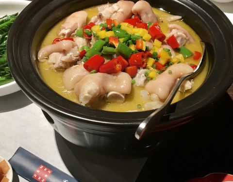 - 很入味。请朋友吃饭,没好意思照相。有个红烧的鸡爪,忘记叫什么名字了,味道很好。深井烧鹅沾酱很美味