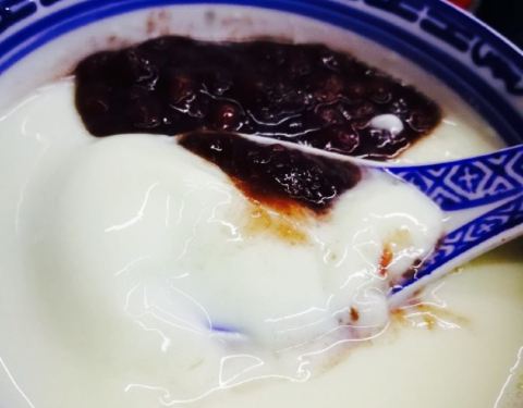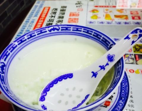 就在陶珠路口,店面还是挺大的,古朴的样子。要了一碗姜汁撞奶,白白的奶液装在类似青花瓷的茶碗里面,闻着有一点淡淡的奶香。等待几分钟,奶液慢慢凝固。用勺子舀起一块含在嘴里又在嘴里慢慢的化开,滑滑的。奶香里面夹杂着姜汁的辣味,觉得很丰富。俗话说冬吃罗卜夏吃姜,在夏天来一碗姜汁撞奶无疑是又好吃又养生了。