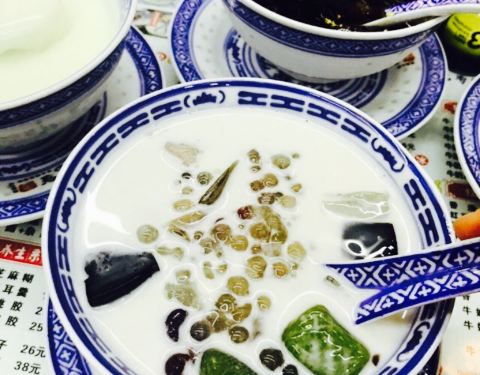就在陶朱路地下停车场门口,挺好找的。店不大,下午两点开业,到晚上十点,人好多,八点去的,几乎都坐满了。点了姜撞奶,多芒小丸子,椰奶黑糯米,和咖喱丸子拼盘。姜撞奶是好喝的,奶味很足,口感也滑嫩,只是我不喜欢姜,所以很快就腻了。多芒小丸子不怎么样,芒果酸,丸子少,不是很值得推荐。椰奶黑糯米最开心,里面有冰渣,又不过甜,总体味道非常好。咖喱丸子拼盘有些贵,五个15,包心的三个大丸子比较可口,特别是蟹子的和芝士的,鱼丸虾丸一般。上菜很快,几乎就是这个吃了那个就上上来了。