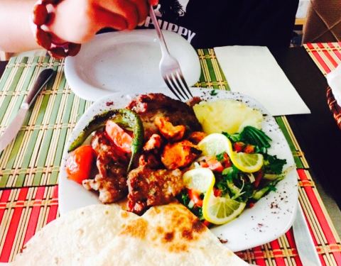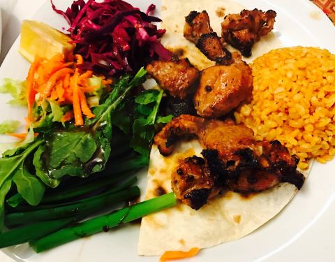 我点的羊肉牛肉串,有新鲜的黄瓜西红柿沙拉香米。那是相当可观的一部分,我心满意足地离开了。主人非常友好和慷慨。给它一眼!