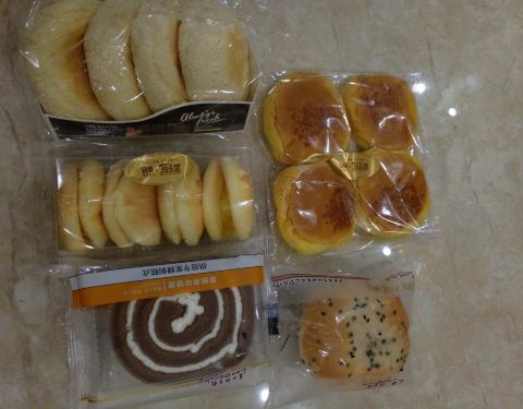 榴莲蛋糕以为有榴莲肉呢,结果没有。蛋挞里面加红豆感觉太甜,其他几款面包倒是很好吃。