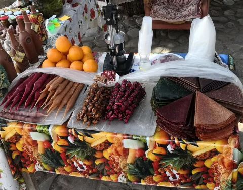 看着不错也好吃,其他的菜品有点偏俄式西餐的感觉,红菜汤,大肉串,土豆烧牛肉都不错