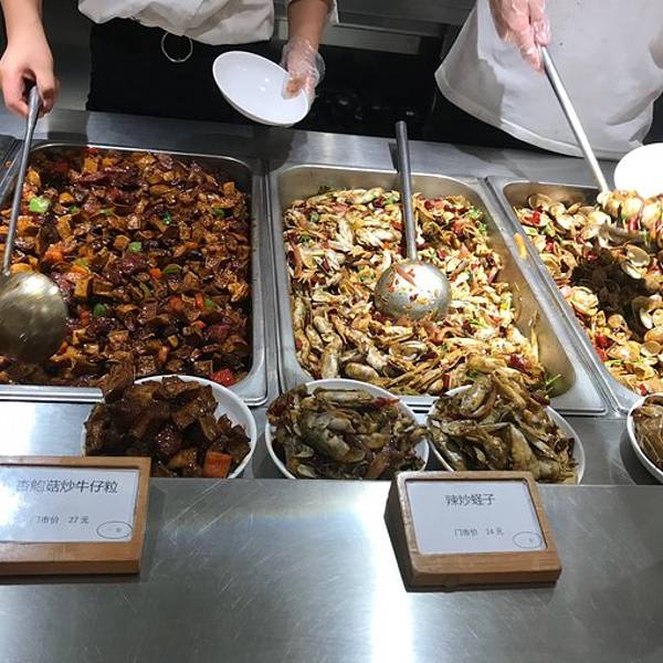性价比相当高的餐厅,用四个字来形容就是“丰俭由人”,有中餐、日料、西式糕点可供选择,风格很宜家:按次序排队拿着托盘选取自己喜欢的食物,而后结算。点面食无需排队,直接去点即可。餐厅内还有扫码购买的冰...性价比相当高的餐厅,用四个字来形容就是“丰俭由人”,有中餐、日料、西式糕点可供选择,风格很宜家:按次序排队拿着托盘选取自己喜欢的食物,而后结算。点面食无需排队,直接去点即可。餐厅内还有扫码购买的冰淇淋机,很先进了。除此之外小火锅和烤鱼也在餐厅内的尽头,建议一定要中午吃,座位少,晚上用餐时段等不到位子。
