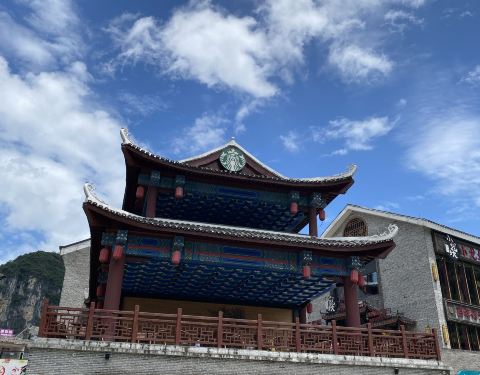 说她是最具中国古典特色的星巴克 一点也不过分 尤其是三楼的楼顶大阳台是静坐观景的绝佳去处(中午12点开始室内电梯开放) 在这里一杯咖啡 坐在高脚椅上 在敞开的大阳台 看白云来来往往