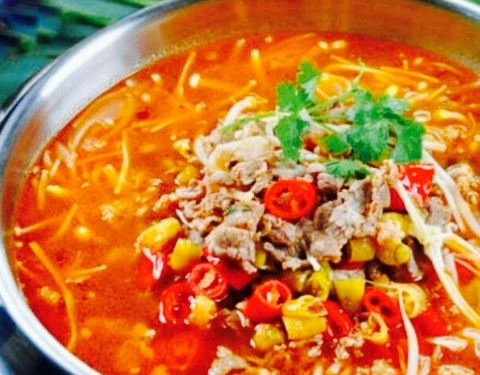 - 酸汤入味的,第一次吃有种罗宋汤的意思,回味又是辣辣的。口味,牛肉十分赞,香,干煸的但是不硬,爽口